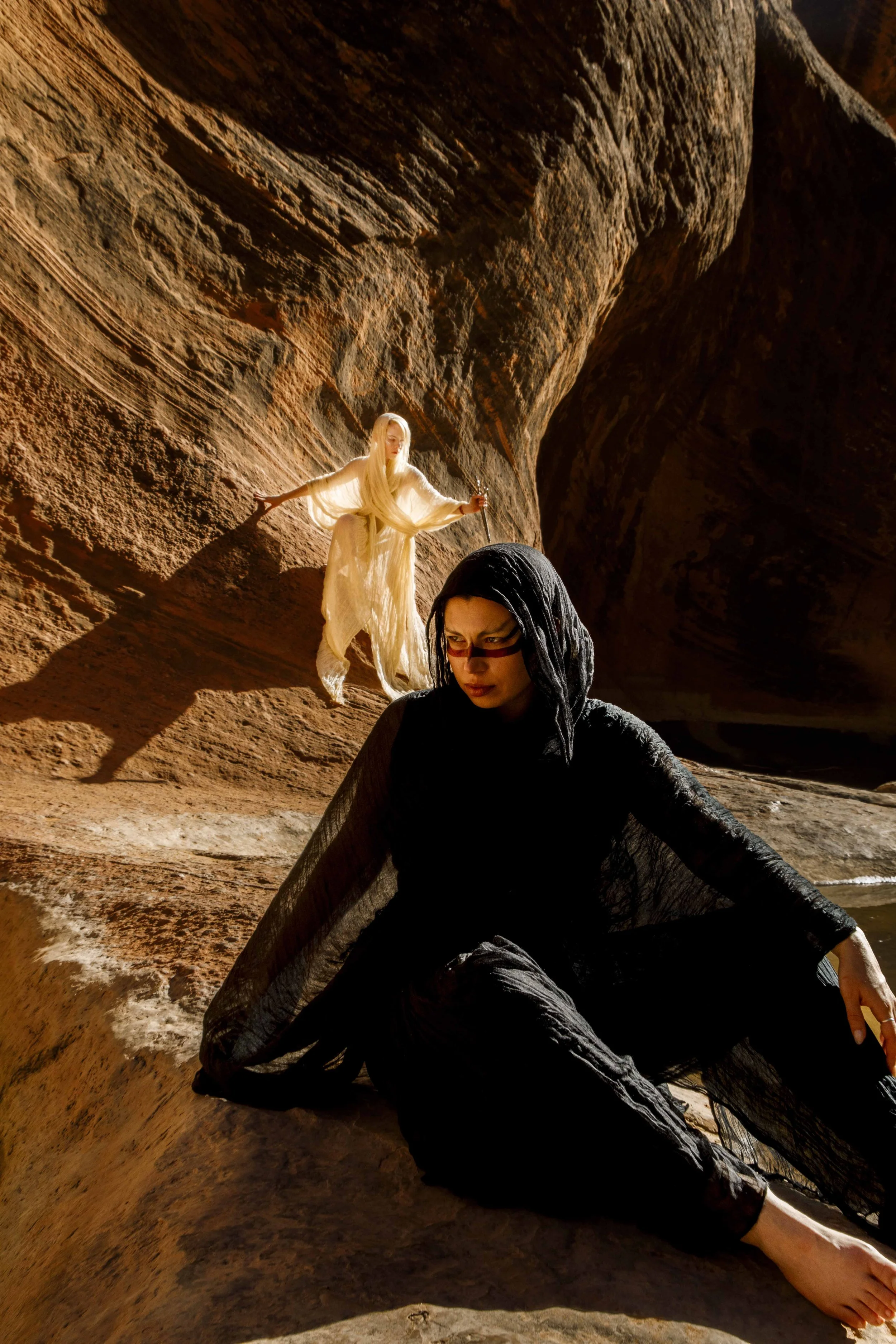 With a gentle touch, The Angel of Zion led Zara through the twisting canyons, navigating the labyrinth with an otherworldly knowledge. The Wraiths, sensing the celestial presence, recoiled and hissed in frustration as their attempts to ensnare Zara failed.